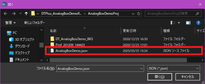 ダイアログが表示されるので、作成した色設定ファイル(.jsonファイル)を指定します。