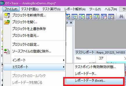 テストレポートリストの色付きエクスポートをする場合は、以下を行ってください。