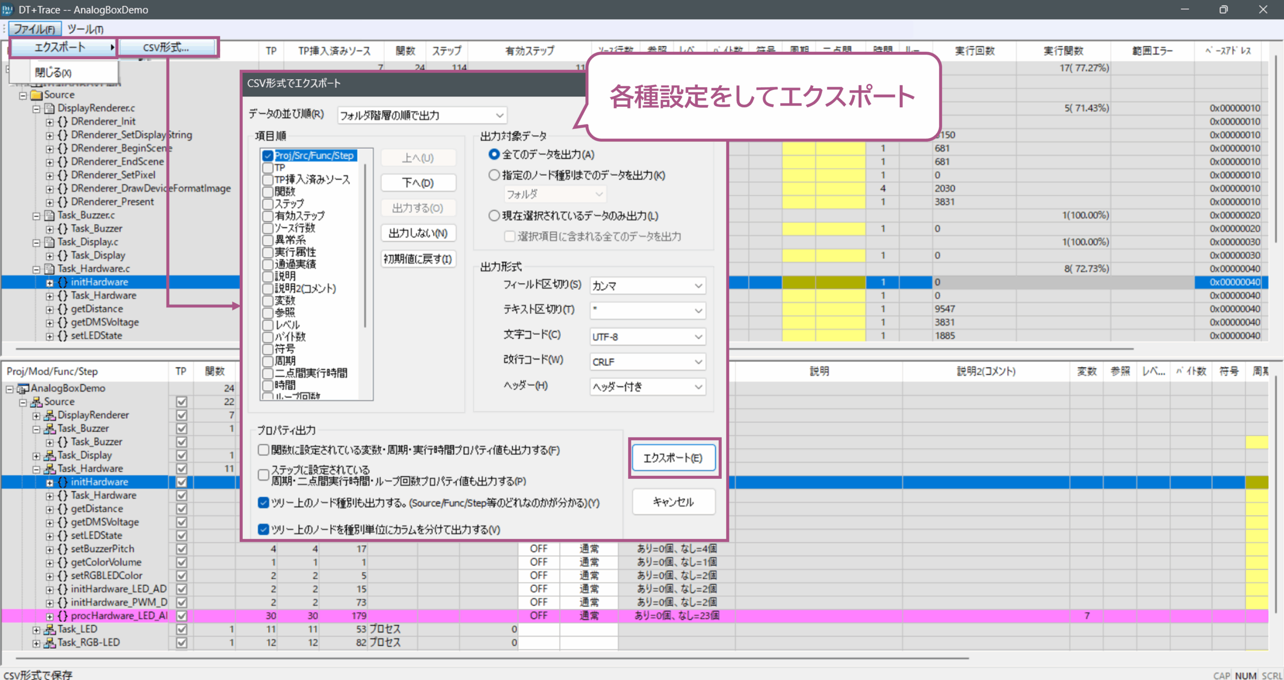 DT+Plannerの「CSVファイルのエクスポート機能」を使うことで、実行回数の多い関数を効率的に抽出できます。